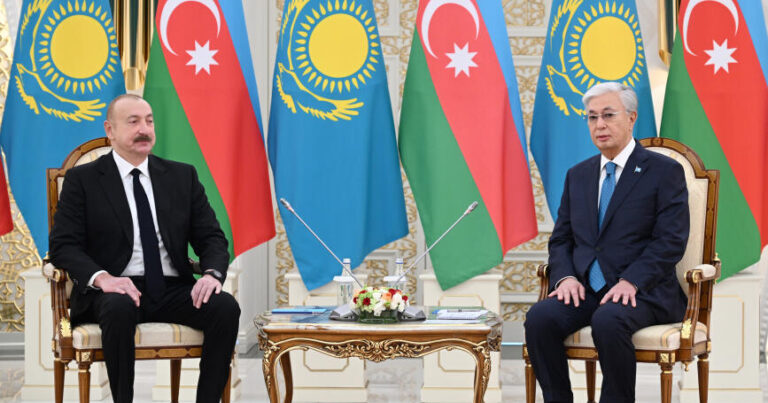 Əvvəlcə qardaş Qazaxıstana dövlət səfərinə dəvətinizə, həmçinin qonaqpərvərliyə görə təşəkkürümü bildirmək istərdim. Azərbaycanın ünvanına söylədiyiniz xoş sözlərə görə sağ olun. Biz qardaş Qazaxıstan xalqına münasibətdə də eyni hissləri bölüşürük.