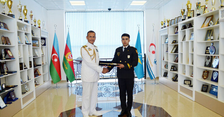 Sonda italiyalı qonaq “Azərbaycan Respublikasının müdafiə naziri ilə İtaliya Respublikasının müdafiə naziri arasında Hərbi Dəniz Qüvvələrinin şəxsi heyətinin təlim və təhsili sahəsində əməkdaşlıq haqqında Niyyət Protokolu”na əsasən, Milli Müdafiə Universitetinin tabeliyində fəaliyyət göstərən Heydər Əliyev adına Hərbi İnstitutun HDQ fakültəsini 2024-2025-ci tədris ilində fərqlənmə ilə bitirən leytenant Hümbət Qasımova İtaliya HDQ komandanı adından “Tələbələrin şərəf qılıncı” xatirə hədiyyəsini və sertifikatı təqdim edib.