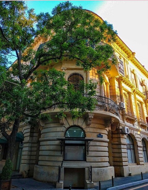 Qoqol 9 küçəsində, Gimnaziçeskaya, 183 və Karantinnaya, 84 ünvanlarının tinində ucaldılmış bina milyonçu Şəmsi Əsədullayevə məxsus saray üslubundadır. Bina üç küçəyə üz tutub və öz monumental fasadları ilə diqqət çəkir.