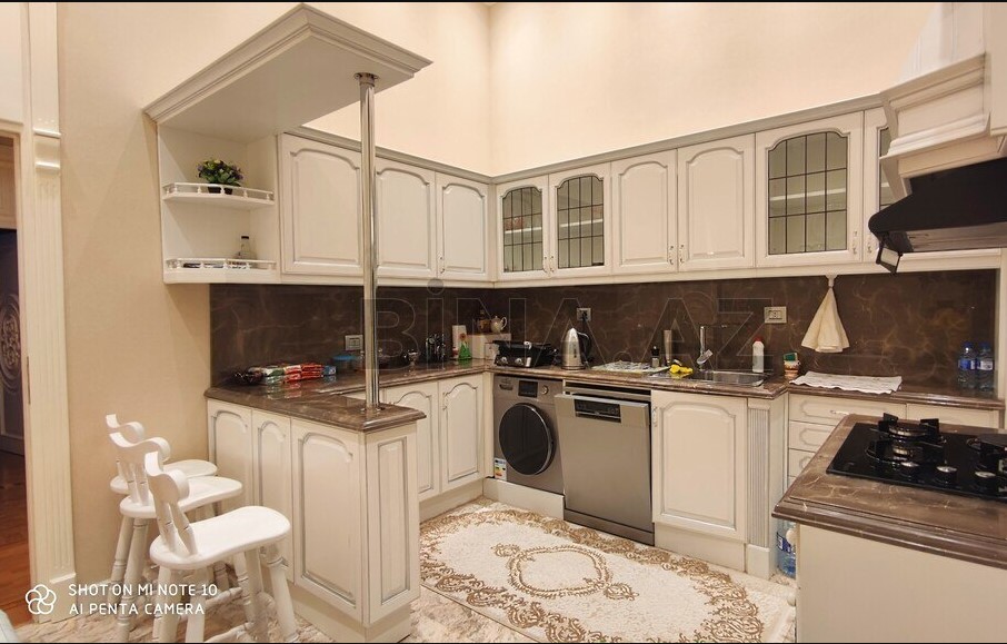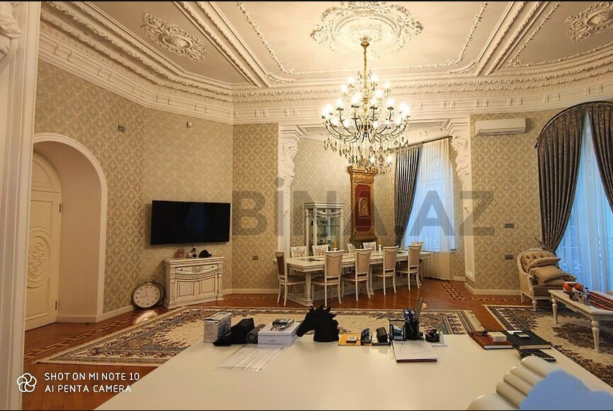 Mənzilin 2 böyük eyvanı var, sahəsi 200 kv m-dir. Otaqların tavanında olan işləmələr tarixə əsaslanır, hər biri orijinaldır. Sözügedən 4 otaqlı mənzilin 2 sanitar qovşağı var və 2 mənzilin birləşməsidir. (Yenisabah)