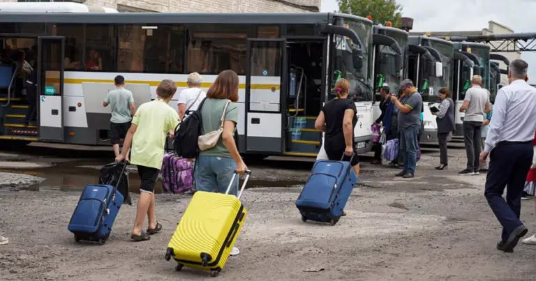 KONKRET.az xəbər verir ki, sakinlər Kursk vilayətindən olan övladlarının çamadanlarını daşıyır və onlara Rusiyanın Moskva vilayətinə getməyə kömək edir.