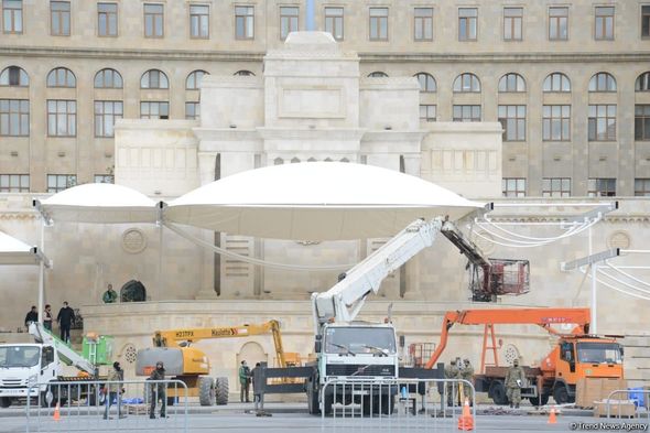 Bu məqsədlə Azadlıq meydanında xüsusi konstruksiyalar quraşdırılır, ərazi abadlaşdırılır. Bundan əlavə, “Azneft” dairəsində Azərbaycan bayrağını əks etdirəcək xüsusi lövhələr də yerləşdirilib.