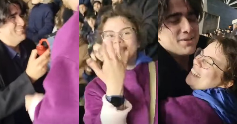 Belə ki, bir gənc stadionda sevgilisinə evlilik təklif edib. Gənc qadın onun təklifinə “hə” deyib.
