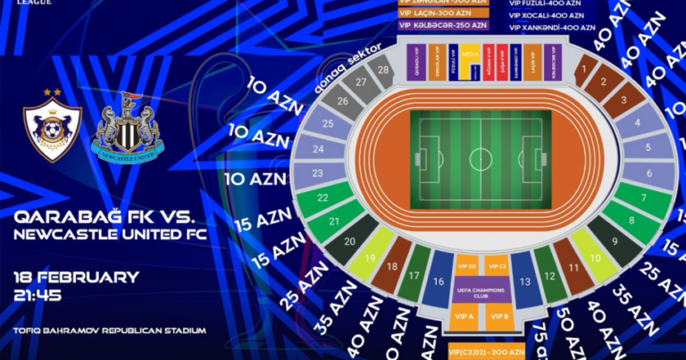 UEFA Çempionlar Liqasının pley-off mərhələsində Bakıda “Qarabağ” və İngiltərənin “Nyukasl” komandaları arasında keçiriləcək ilk oyuna biletlərin qiyməti açıqlanıb.