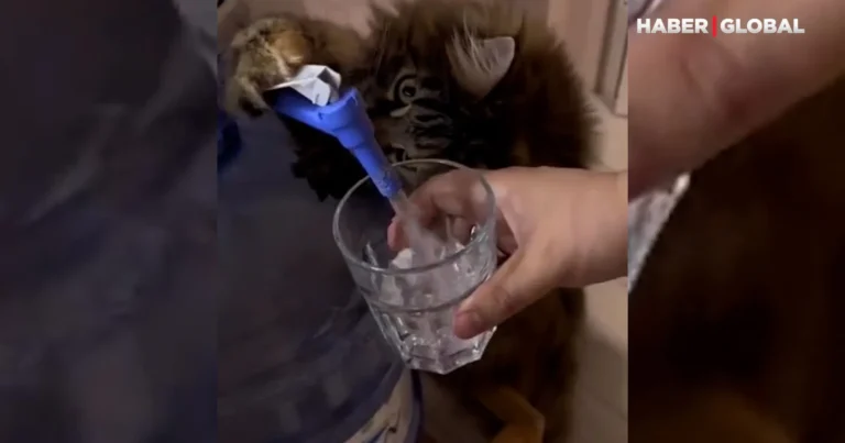 KONKRET.az xəbər verir ki, ruslar tərəfindən çəkilən videoda pişiyin bütün ciddiliyi ilə su aparatından stəkanı doldurduğu görüntülənib.