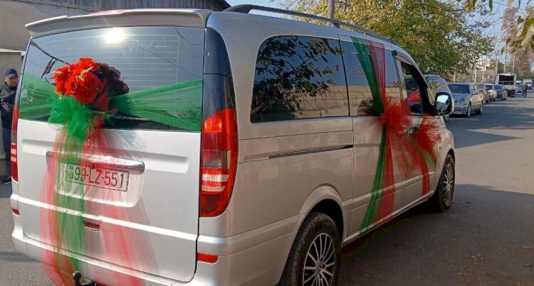 Ailəsi cənazəni daşıyan avtomobili “bəy maşını”na bənzər qırmızı lentlə bəzəyib.