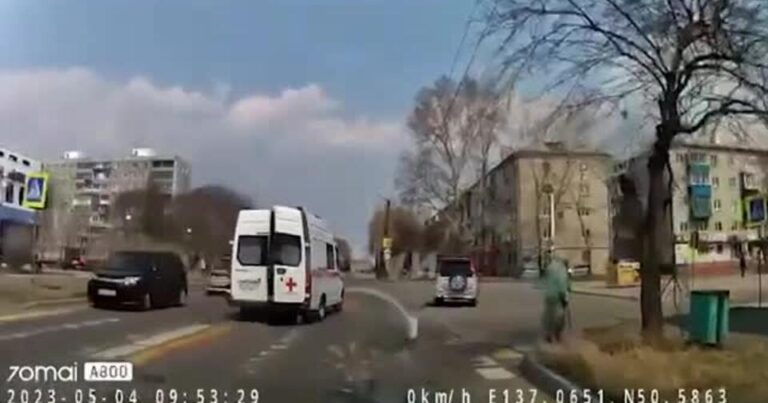 Rusiyanın Xabarovsk vilayətinin Komsomolsk-na-Amur şəhərində xəstə hərəkətdə olan təcili yardım maşınından düşərək qaçıb.